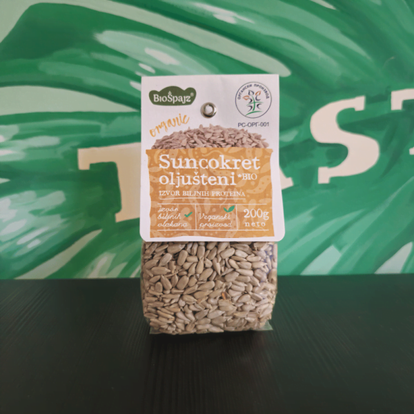 Bio Spajz peeled organic sunflower is rich in vitamins E and B. Ideal for salads, pastries or as a healthy snack. No additives, nutritionally rich and crunchy.