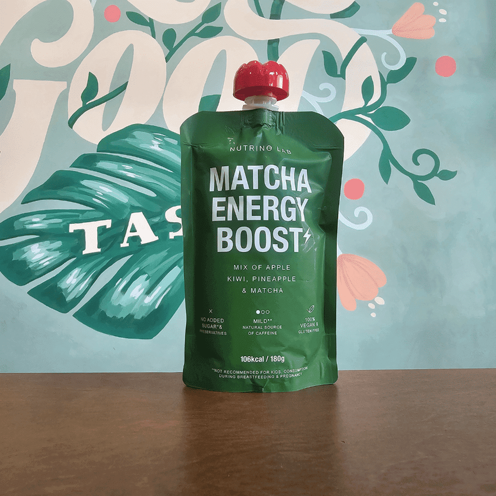 Concentrated apple pulp (73%)*, kiwi pulp (16%), pineapple pulp (10.8%)*, Matcha powder (0.2%)*, ascorbic acid - vitamin C.
