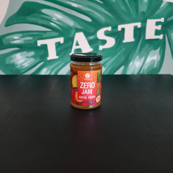 Rabeko Zero exotic fruit jam brings true tropical pleasure in every bite, while being fully adapted to a modern, light and balanced diet. The combination of mango, pineapple and passion fruit gives it a full, juicy and natural taste reminiscent of homemade fruit spreads, but without additional calories and unnecessary sugar.