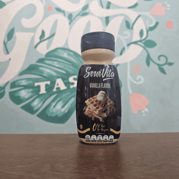 water, sweeteners (erythritol, sucralose, steviol glycosides), stabilizer (sucrose esters of fatty acids, xanthan gum), vanilla flavor, acidity regulator (lactic acid), preservative (potassium sorbate), salt, color (beta carotene).