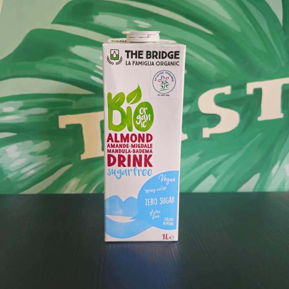 The Bridge badem napitak je organski, bez glutena i laktoze. Savršena alternativa za mleko, idealan za smoothie-e, palačinke, doručak uz žitarice, granolu…